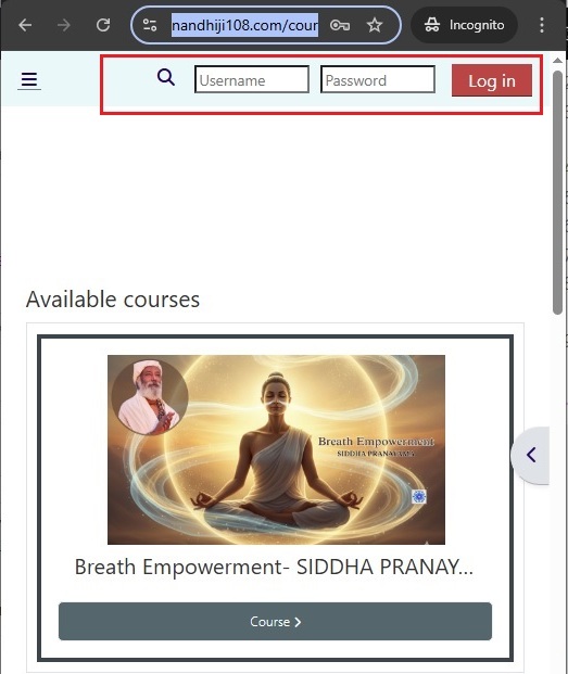 https://nandhiji108.com/courses/ - Enter user name and password, Click on Login